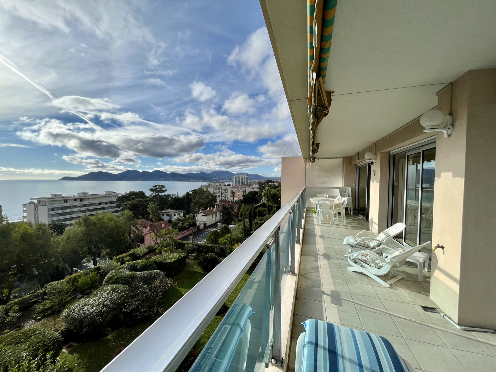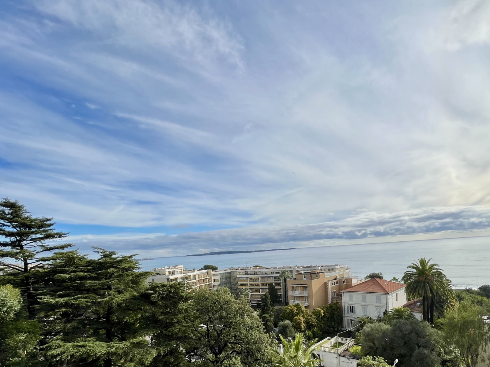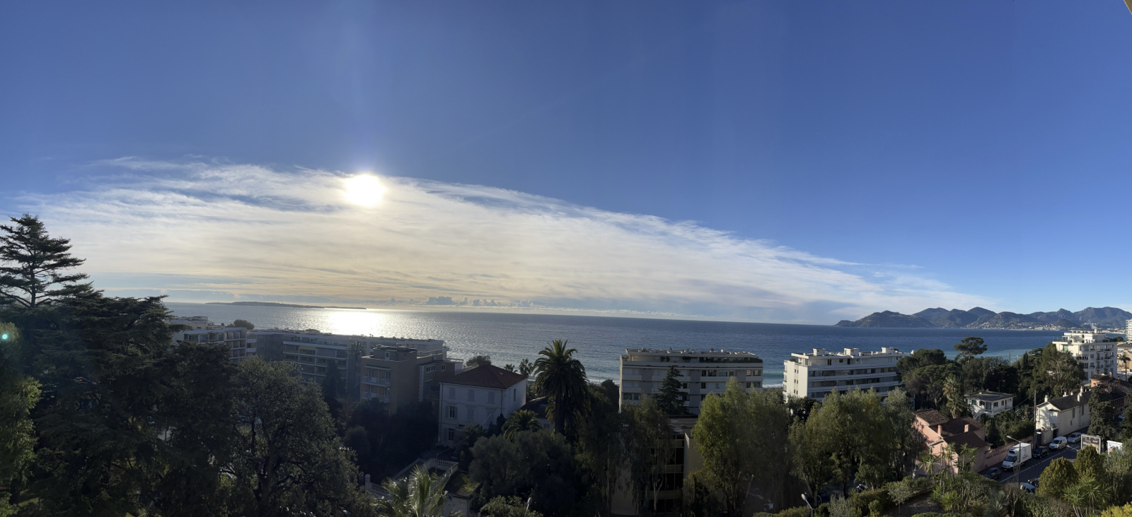 vue MER des îles de LERINS à L'ESTEREL au sud, vue arborée à l'arrière.
