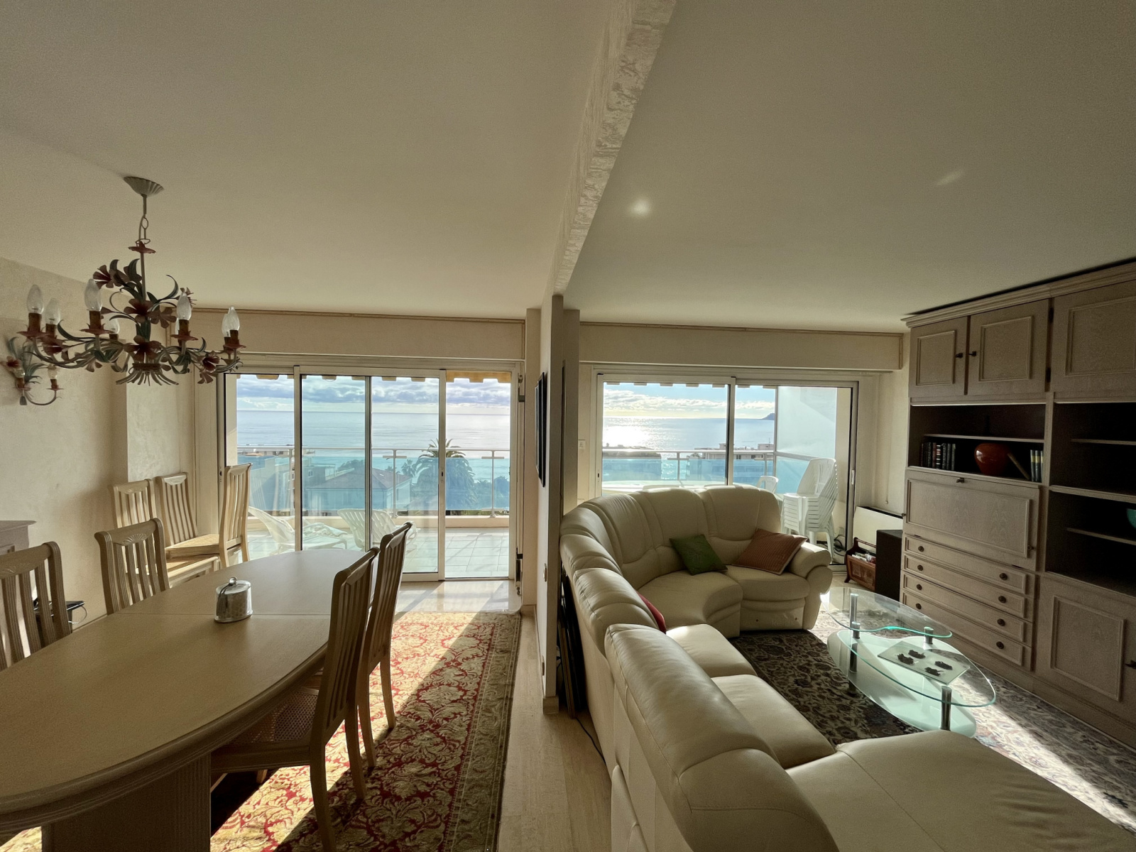 Magnifique terrasse profonde sur la mer de 19m²: elle donne sur un double séjour de 39m² et sur la chambre de maître de 20m² disposant d'une belle salle de bain